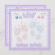 Rosa und blaue Babyspuren und Vintage Buttone mit Lavendelrahmen - Baby Gender Reveal Party Einladung, kommen Sie zur neuesten Babydusche - und erfahren Sie das Geschlecht des neuen Babys zusammen mit Mutter und Vater - passen Sie diese Babydusche an - Hinweis: Kein echter Platz auf dieser Einladung, dies ist nur digital erstellt _ Baby nicht inbegriffen