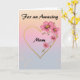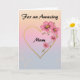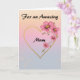 For an Amazing Mum Pink Floral Gold Heart Mother's day card on a peach pink and lavender background with accents of glitter.