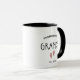 Diese zweifarbige Tasse in Schwarz und Weiß zeigt das Design "FÖRDERT GRANDPA" in einem schönen Schriftart, zusammen mit rosa Babyfüßen und EST Jahr. Es ist ein ideales Geschenk für Großelterntage, Weihnachten, Geburtstage oder sogar als eine wunderbare Schwangerschaftsankündigung. Der bald zu erwartende Opa kann diesen Sake für immer schätze!