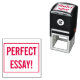 Dieses motivierende Gummi-Briefmarke-Design zeichnet sich durch die positive Botschaft "PERFECT ESSAY!" aus. Es könnte von einem Lehrer, Pädagogen oder Tutor verwendet werden, um anzuzeigen, dass ein Schüler gut abgeschnitten hat.