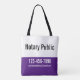 Eine Business-Tote-Tasche macht es einfach, während Sie unterwegs Ihre Notare zu fördern. Sie können den Text bearbeiten, um einen Firmennamen (falls gewünscht), Ihre Telefonnummer und eine E-Mail-Adresse hinzuzufügen. Alle Texte können bearbeitet oder gelöscht werden. Die obere Hälfte des Magneten ist weiß mit schwarzem Text. Der untere Teil ist königlich lila mit weißem Text.