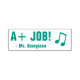 Dieses inspirierende Briefmarke-Design aus Gummi enthält die ermutigende Botschaft "A+ JOB!" und einen personalisierten Pädagogen. Es verfügt auch über eine dekorative Beamen achte Noten. Es könnte von einem Lehrer, Pädagogen oder Tutor verwendet werden, um zu bestätigen, dass der Schüler eine großartige Arbeit geleistet hat.