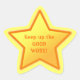 Unterstützen Sie die Motivation von Kindern oder anderen mit diesem "Behalt die gute Arbeit!" Ermutigung Sternaufkleber in Gelb und Orange.