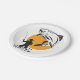 Ein Fischer mit einer großen Forelle. Dieser Entwurf schaut wirklich effektiv auf diesem PapierTeller