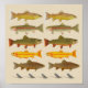 Art Poster von 5 gemeinsamen Forellen gefunden an der Ostküste - Brown, Rainbow, Brook Golden (Palomino) Regenbogen und Tiger (Brown and Brook cross). Von den ursprünglichen Wasserfarben von der Natur Künstler Thom Glace