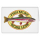 FISH MEHR - ARBEIT WENIGER - Regenbogenforelle. Dieses humorvolle Design ist auch mit anderen Fischen erhältlich: Bachforelle, Bachforelle, Char, Bluegill und Bass.