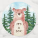 Niedliches Babydesign mit einem braunen Bär mit einem grünen Fichtenwald und Aquarellblau. Einfach mit Ihren Informationen personalisieren. Besuchen Sie unseren Shop und sehen Sie sich unsere gesamte Waldabenteuerbärensammlung an.