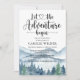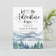 Lass das Abenteuer beginnt thematisch Aquarell Babydusche Einladung mit Wald- und Berglandschaft mit Kalligraphie Schrift Typografie mit Herz in der Mitte. Entsprechende Materialien und Party finden Sie in der vollständigen Suite unter: https://www.zazzle.com/collections/forest_adventure_baby_shower-119311648144421112