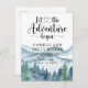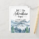 Lass das Abenteuer beginnen Wald und Berge Wildnis Landschaft themed Schwangerschaft Ankündigung Wasserfarbe mit Kalligraphie Skript Typografie mit Herz in der Mitte. Trendy rustikaler Stil. Wenn Sie weitere passende Artikel für dieses Design benötigen, kontaktieren Sie mich bitte über den Link "Nachricht" in meinem Shop. Entsprechende Materialien und Party finden Sie in der vollständigen Suite unter: https://www.zazzle.com/collections/forest_adventure_baby_shower-119311648144421112