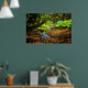 Ein Poster mit einem hellen grünen Wald mit einer hübschen gewundenen Bucht. Die braunen Blätter bedecken den Waldboden und bilden einen schönen Kontrast zu den üppigen Grünpflanzen dieser zauberhaften Wälder.