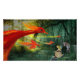 Mythische Phönix-Vögel fliegen durch den Wald, vorbei an einem Einhorn und einer Fee, die am Pool sitzt. Original digitale Kunst von Yuichi Tanabe.
