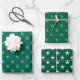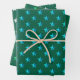 Ein festliches Set aus Papier für die Weihnachtsfeiertage mit türkisblauen, grünen und silbernen Sternen auf einem tiefwaldgrünen Hintergrund. Ideal für jeden Anlass und macht eine eindrucksvolle Geschenkpackung.