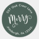 Festlicher Waldgrün und weiß Merry Script Urlaubsticker mit Rücksendeadresse. Bitte sehen Sie sich diesen Laden an, um Weihnachts-Einladungen und Mailing-Accessoires zu koordinieren.