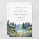 This elegant forest lakeside wildflowers floral watercolor wedding save-the-date card can be personalized with your information in modern typography. Designed by Thisisnotme©