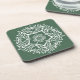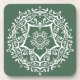 Dieses weiße Mandala liegt auf einem grünen Waldgrund. Die Farben sind friedlich. Teil der Sammlung Jarn Mandala.