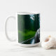 Artistic mug featuring a grayscale female portrait surrounded by lush forest tones and natural light, symbolizing peace, creativity, and renewal.
