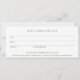 Modernes Geschenkgutschein für Olivgrün / Waldgrün mit einem einfachen und minimalen Design mit "einem Geschenk für Sie" in einer eleganten Kalligraphie an der Vorderseite. Auf der Rückseite befindet sich das Geschenkgutscheinformular sowie Ihre Kontaktinformationen in minimalistischer Form.