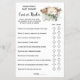 Waldtiere über oder unter dem Kinderduschenspiel. Englisch und Spanisch Spiele in der Version inbegriffen (vorne und hinten). Ändern Sie Bride in die Vorlage für die englische und spanische Version zu Name. Für weitere Anpassungen (Fragen und andere Formulierungen ändern, Schriftart Farbe, Schriftart Stil ), klicken Sie auf Personalisieren, scrollen Sie nach unten und klicken Sie auf den Link "Klicken Sie auf, um weiter anzupassen". WIE MAN SPIELT: Die Gäste raten, ob die Nummer in jeder Anweisung vorbei oder unter ist