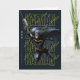 Karo diese Illustration aus, wie Batman von seinem Griff nach der Greifvorrichtung schwingt, mit seinem Namen in einem elektrischen Schriftart hinter ihm.
