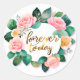 Ein romantischer Hochzeitsaufkleber mit edlem Goldfolienskripttext, pastellfarbenen Rose, Eukalyptus-Blätter und einem weichen Aquarellhintergrund. Ideal für Hochzeitsfeiern, Liebhaber und Dankeschön-Labels.