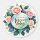 Ein romantischer Hochzeitsaufkleber mit edlem Goldfolienskripttext, pastellfarbenen Rose, Eukalyptus-Blätter und einem weichen Aquarellhintergrund. Ideal für Hochzeitsfeiern, Liebhaber und Dankeschön-Labels.