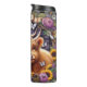 Dies ist eine herzerwärmende und skurrile Illustration mit zwei bezaubernden, flauschigen Hochlandkälbern, die sich gegenseitig umarmen. Die Kälber sind von einem blumengeschmückten Kranz mit bunten Blume und Schmetterlingen umgeben, der Hintergrund ist ein schwarz-weißes Gingham-Muster. Über den Kälbern wird ein Banner mit dem Wort "FUSS" platziert. Das gesamte Bild strahlt ein Gefühl von Wärme, Liebe und natürlicher Schönheit aus.