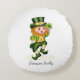 Forever Lucky Green Gnome & Clover auf Weiß Rundes Kissen