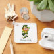 Niedlich für immer ein grüner Gnome mit Klee und goldenem Konfetti auf weißem Hintergrund. Text kann personalisiert sein. Monogramm auf der Rückseite. Ein gutes Souvenir für alle!