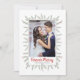 Eine perfekte Weihnachtskarte, um Ihr verheiratetes zu verkünden. Ein vertikaler Foto und handgeschriebener Text "Forever Merry" erscheinen in einem eleganten Wintergarten.