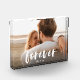 Mit diesem einzigartig geformten Acrylblock, der perfekt für Paare geeignet ist, schaffen Sie einen süßen Hauch von Hochzeit, Verlobung, Jubiläum, Flitterwochen oder besonderen Augenblick. Fügen Sie ein beliebtes Foto hinzu, mit "ewig" überlagert in lässigen Schriftzeichen, und Ihre Initialen darunter.