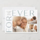 Eine elegante Collage Verlobung-Anzeigenkarte mit drei Fotos (ein Quadrat und zwei horizontale), mit "FOREVER" in moderner Schrift oben und links. Personalisieren Sie Ihre individuelle Nachricht (mit "Wir sind verlobt!" angezeigt) und Ihre Namen.