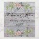 Dieses Hochzeitsmuster zeichnet sich durch zarte Blumenrahmen auf einem rustikalen Barnboard-Hintergrund aus. Das romantische Design ist perfekt für eine Hochzeit im Frühjahr oder Sommer, und der dezente Gebrauch von Blume verleiht dem Gesamtbild eine Touch Eleganz.
