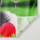 So ein niedliches und bezauberndes helles Aquarellbild eines schwarz-weißen schiitischen Tzu-Hundes, der draußen im Park liegt. Ein rotes Herz davor und mit einem roten Herzballon mit weißer Typografie "Forever Yours" und einem weißen Pfotendruck.