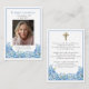 An elegant memorial photo funeral memorial prayer cards featuring symbolic blue forget-me-not flowers. You can customize with your chosen prayer, psalm or poem. Elegant small blue flowers on simple white background. Makes great keepsake.
