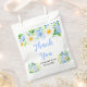 This beautiful and elegant wedding favor bag features watercolor blue forget-me-nots, daisies and foliage. The text combines handwritten script and serif fonts for a stylish and modern look. This is perfect for a spring or summer rustic wedding.