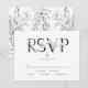 Formal Black Floral Letters Wedding RSVP Response Karte