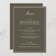 This formal wedding menu card features an elegant script heading, clean serif typography, and a classic border on an olive background for a timeless reception look. The structured layout presents each course clearly while adding a refined, cohesive touch to table settings or place settings. Designed to coordinate seamlessly with classic and black-tie wedding stationery, it elevates the overall tablescape without feeling busy. Ideal for couples who want reception details that feel polished, organized, and enduring.