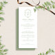 Classic and refined, this Sage Green Floral Monogram Crest Wedding Menu features an elegant botanical crest with personalized initials and soft sage green typography on a clean white background. Designed with a coordinated front and back, this formal wedding menu beautifully presents starters, main courses, and desserts while complementing timeless, garden, and romantic wedding themes. Perfect for elevating place settings and pairing seamlessly with sage green wedding stationery suites.