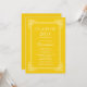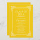 Schöne klassische, moderne Graduiertenparty Einladung, Abschluss-Ankündigung mit einem extravaganten weißen Rahmen Set auf gelbem Goldboden für ein formales und elegantes Aussehen. Perfekte Einladung für einen Abschluss eines Mädchens oder eines Jungen, der seinen Abschluss in der Schule oder Uni gemacht hat. Erhältlich in unserem Shop in einer Vielzahl beliebter Schulfarben. Kundenspezifische Farbbestellungen sind immer willkommen.