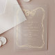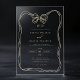 Die formale Elegant GoldBow Monogram Acryl Einladungen sind perfekt für Paare, die zeitlose Eleganz suchen. Diese Einladungen aus schlichtem Acryl sind mit einem raffinierten schwarzen Bogen-Design und einem Monogramm für eine personalisierte Touch versehen. Das klassische Farbschema in Gold strahlt Eleganz aus, während das klare Acryl eine moderne Drehung verleiht. Ideal für Hochzeitsfeiern, diese laden zum Vermitteln von Stil und Formalität ein und setzen den Ton für einen unvergesslichen Tag. Individuell gestaltbare Texte in stilvollen Schriftart sorgen für einen einzigartigen, hochwertigen Flair für ein unvergessliches Erlebnis.