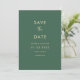 Dieses beeindruckende Formal Elegant Minimalistisch Modern Wedding Save the Date strahlt eine luxuriöse und hochwertige Anziehungskraft aus, die sicherlich eine Aussage machen wird. Die trendige, grüne Set verleiht den Ton für eine raffinierte und moderne Feier, während die gepflegte und minimalistische Typografie eine Touch zeitgenössischen Charmes und klassischen und formellen Flair verleiht. Diese stilvolle Save the Date-Karte ist ideal für Paare, die eine raffinierte und zeitlose Ankündigung für ihren besonderen Tag wünschen. Verwenden Sie das Design-Tool, um die Hintergrundfarbe, den Schriftart, die Schriftgröße und die Position nach Ihren Wünschen anzupassen. Entsprechende Artikel finden Sie in der Kollektion Green Modern Minimalistisch Elegant Wedding Einladungen.