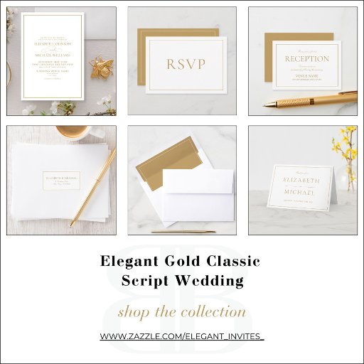 Eine klassische, elegante Goldhochzeit mit Schriftzeichen. Perfekt für die moderne Braut mit einer formalen Affäre. Kontaktieren Sie Designer für passende Produkte. Copyright Elegant Invites, alle Rechte vorbehalten.