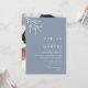 Diese formelle, minimale staubblaue Hochzeitseinladung ist perfekt für eine rustikale Hochzeit. Das Design umfasst Wildkräuter in Aquarelltönen in einem staubigen blauen Hintergrund.