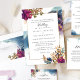 Freuen Sie sich auf diese elegante und eindrucksvolle Hochzeitseinladung mit wunderschönen Aquarellen und Tintenflecken, die hinter Ihren Details fließen und eine zauberhafte Himmelsszene schaffen. Exquisite Ecke Blumendekorationen Rahmen Einladung. Aufnahmen mit den Namen der Eltern. Aquarellfarbene Flecken, Foliage und Blume vor und zurück in einer kreativen Mischung aus lila, Fuchsia, Magenta, aquamarin, türkis, blau, navy, Senf, goldgelben und grünen Farbtönen. Teil unserer Kollektion "Mystic Garden" mit einer Vielzahl von Produkten zur Koordination. Die gesamte Sammlung finden Sie unter: https://www.zazzle.com/collections/mystic_garden_celestial_collection-119823869554047930