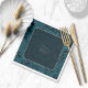 Elegante Hochzeitsnapkins in einem formaleren Stil mit einem klassischen Layout von goldenen Rahmen und Text mit einem verzierten paisley Rahmen in glitzerndem aquamarin. Fügen Sie Ihre Namen in diesem schönen Skript-Schriftart und Hochzeitsdatum in einer klassischen Serif mit es ist traditionell attraktiv. Suchen Sie ID767, um andere Farboptionen für dieses Design zu sehen.