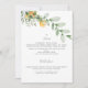 Eintrittskarte für die Hochzeitdetails. Zwei Hotels. Shuttle. Cocktails. Hochzeitsort. Weißer Hintergrund. Sonnenblumen und Blattwerk.