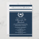 Navy Blau und Weiß... Formale Streifen in Ihrer Wahl der Schulfarben. Laurel Kranz mit Graduierungskappe Mörtel Logo Ikone. Klassische und klassische personalisierte Standardankündigung mit solidem Farbhintergrund und horizontalen Streifen. Auf der Kartenrückseite werden Grad-Kappe und Wappen wiederholt. Ein klassischer und zeitloser Sake, der sich an den besonderen Tag Ihres Jungen oder Mädchens anpassen lässt. Fügen Sie Informationen über die Anlauffeier, Open House Party, Empfang oder alle Details, die Sie wünschen.