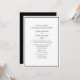 Feierliche Einladung zur Hochzeit. Verbundene Eltern wurden aufgelistet. Weiß und Schwarz. Elegantes Skript. Zwei Orte.