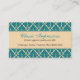 Ein klassisches Damastmuster gegen helles Aqua gleicht diese Visitenkarte aus. Geschäftsinformationen stehen heraus gegen die cremefarbene Platte auf beiden Seiten. Ein elegantes suchen einer Butike, Berater, Salon oder nach jedem Einzelhandelsgeschäft. Verfügbar in den abwechselnden Farben.