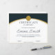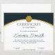 Entwickelt für den modernen Arbeitsplatz, verfügt diese Urkunde über eine atemberaubende Farbpalette aus tiefem Marineblau und metallischem Gold. Das Design enthält ein prominentes goldenes Wachssiegel-Emblem oben, elegante geschwungene goldene Linien und eine saubere weiße Mitte für maximale Lesbarkeit. Der Name des Empfängers wird in einer schönen, fließenden schwarzen Schriftart (hier als "Emma Smith" dargestellt) angezeigt, was einen persönlichen und prestigeträchtigen Touch hinzufügt.